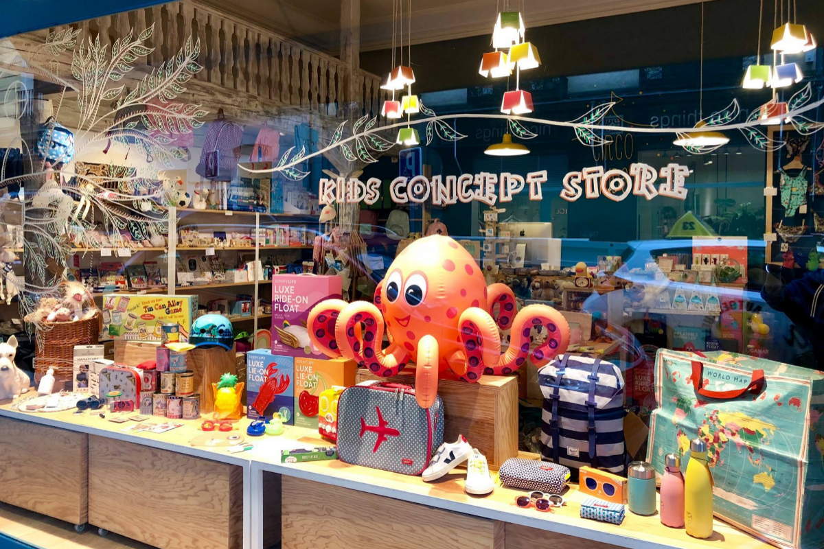 Las tiendas están decoradas de forma colorida y alegre, con murales y dibujos de sus personajes favoritos. Los muebles y estanterías están a su altura, para que puedan explorar y elegir sus productos con facilidad.